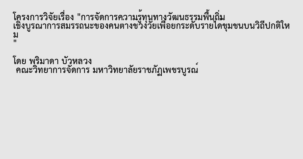 การจัดการความรู้ทุนทางวัฒนธรรมพื้นถิ่น เชิงบูรณาการสมรรถนะของคนต่างช่วงวัยเพื่อยกระดับรายได้ชุมชนบนวิถีปกติใหม่