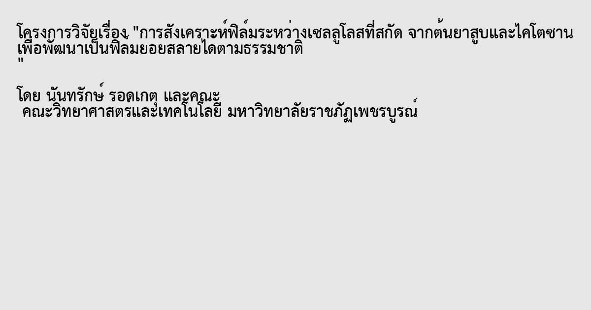 การสังเคราะห์ฟิล์มระหว่างเซลลูโลสที่สกัด จากต้นยาสูบและไคโตซาน เพื่อพัฒนาเป็นฟิล์มย่อยสลายได้ตามธรรมชาติ