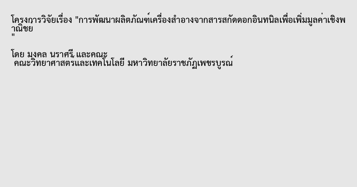 การพัฒนาผลิตภัณฑ์เครื่องสำอางจากสารสกัดดอกอินทนิลเพื่อเพิ่มมูลค่าเชิงพาณิชย์