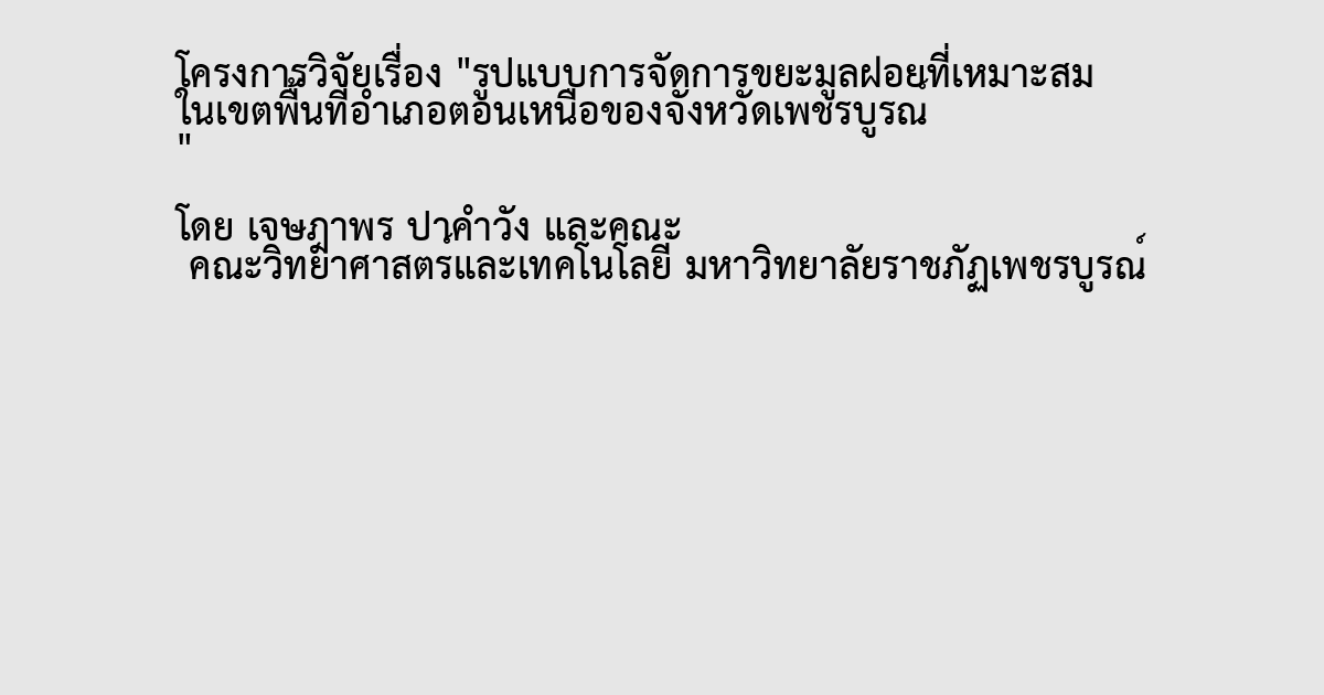 รูปแบบการจัดการขยะมูลฝอยที่เหมาะสม ในเขตพื้นที่อำเภอตอนเหนือของจังหวัดเพชรบูรณ์