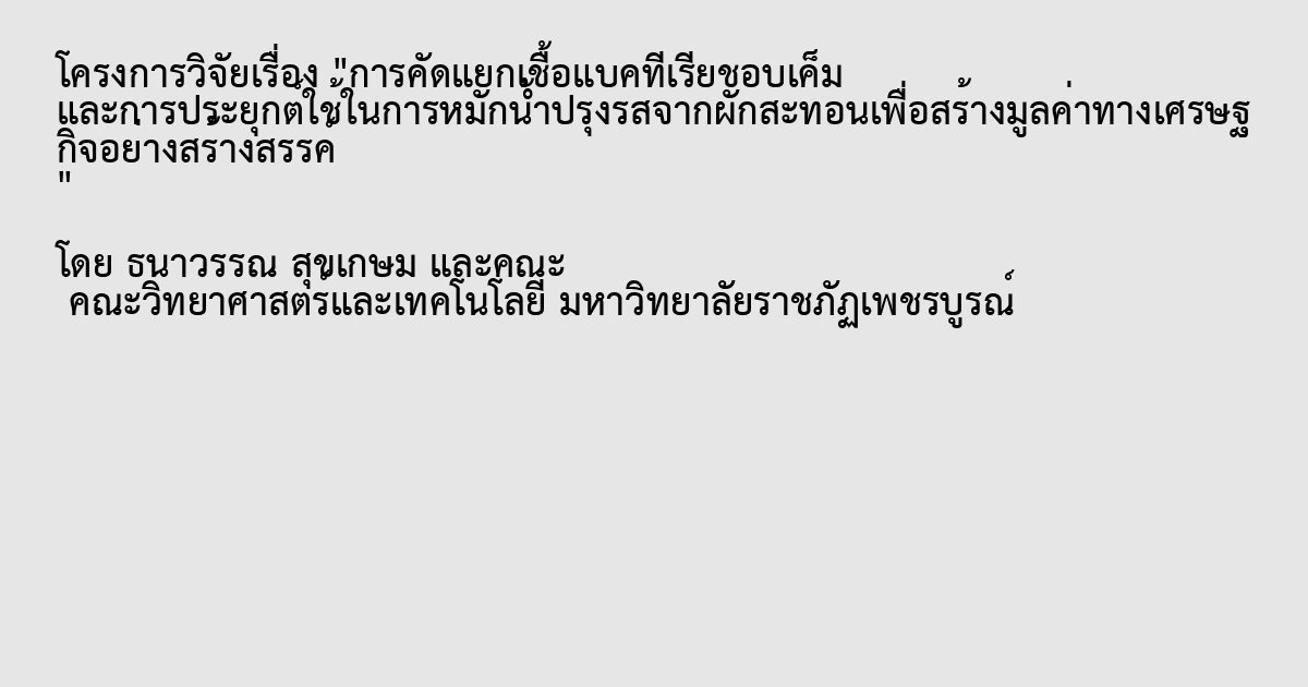 การคัดแยกเชื้อแบคทีเรียชอบเค็ม และการประยุกต์ใช้ในการหมักน้ำปรุงรสจากผักสะทอนเพื่อสร้างมูลค่าทางเศรษฐกิจอย่างสร้างสรรค์