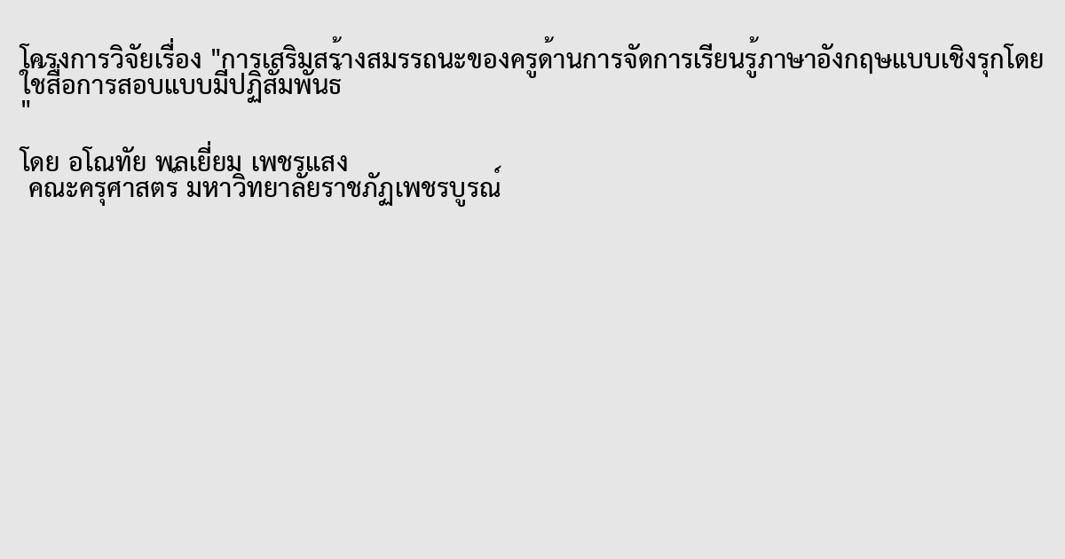 การเสริมสร้างสมรรถนะของครูด้านการจัดการเรียนรู้ภาษาอังกฤษแบบเชิงรุกโดยใช้สื่อการสอบแบบมีปฏิสัมพันธ์