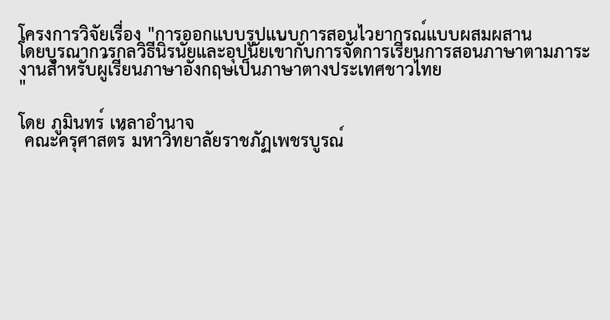 การออกแบบรูปแบบการสอนไวยากรณ์แบบผสมผสาน โดยบูรณาการกลวิธีนิรนัยและอุปนัยเข้ากับการจัดการเรียนการสอนภาษาตามภาระงานสำหรับผู้เรียนภาษาอังกฤษเป็นภาษาต่างประเทศชาวไทย