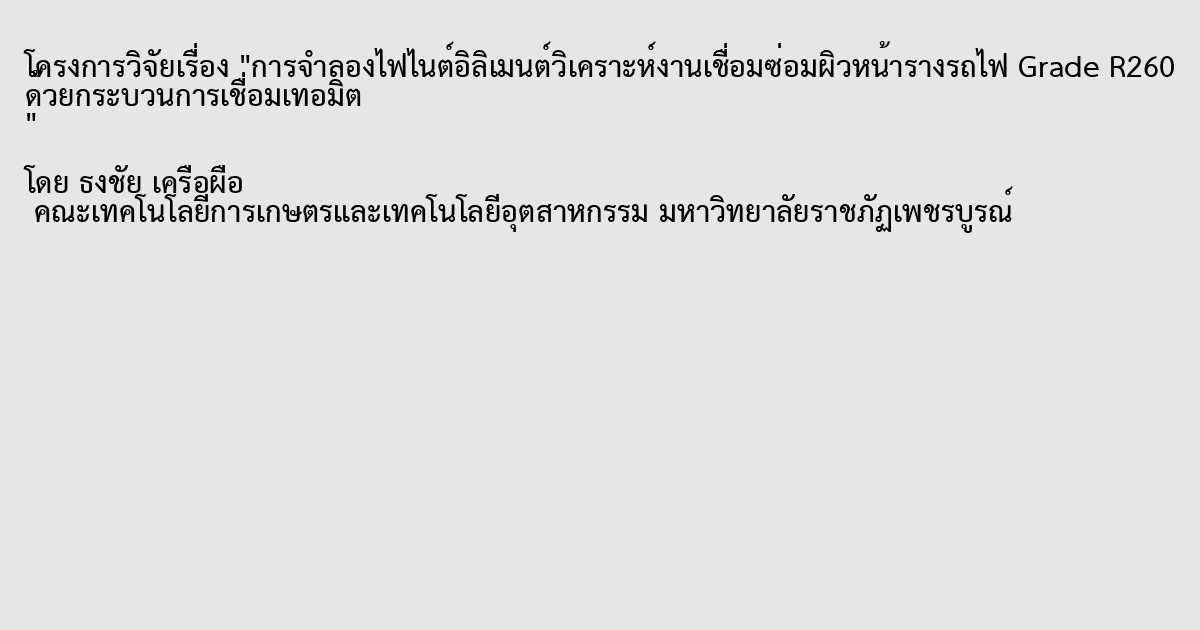 การจำลองไฟไนต์อิลิเมนต์วิเคราะห์งานเชื่อมซ่อมผิวหน้ารางรถไฟ Grade R260 ด้วยกระบวนการเชื่อมเทอมิต