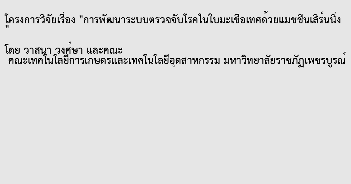 [ข้อมูลทั่วไป] 2569 : การพัฒนาระบบตรวจจับโรคในใบม...ือเทศด้วยแมชชีนเลิร์นนิ่ง