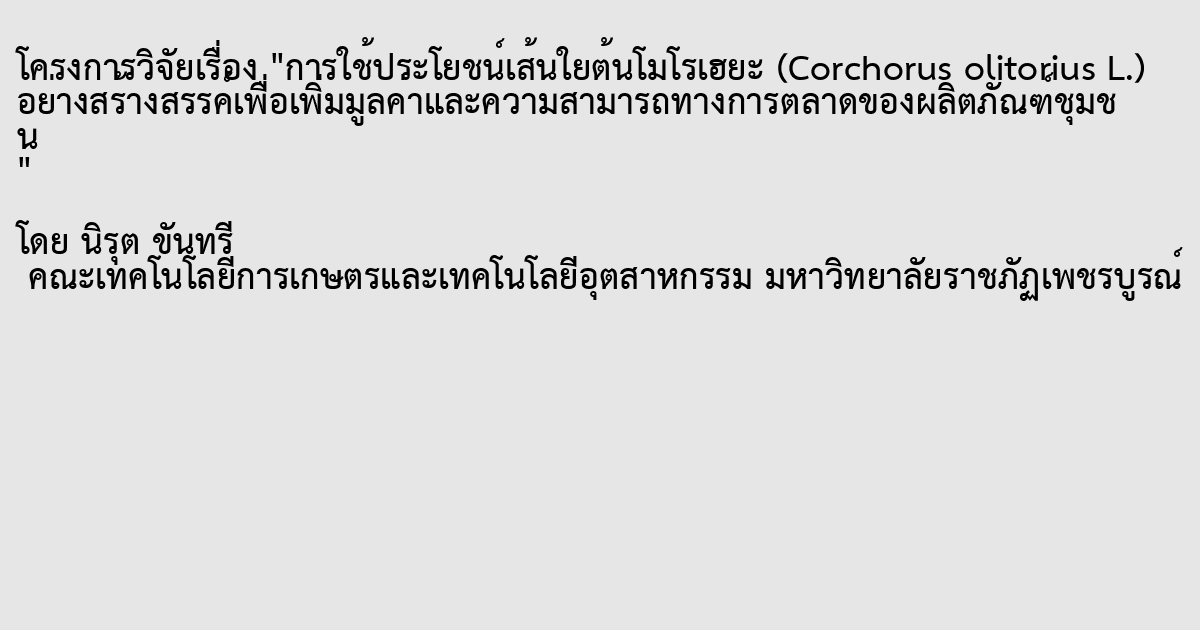 การใช้ประโยชน์เส้นใยต้นโมโรเฮยะ (Corchorus olitorius L.) อย่างสร้างสรรค์เพื่อเพิ่มมูลค่าและความสามารถทางการตลาดของผลิตภัณฑ์ชุมชน