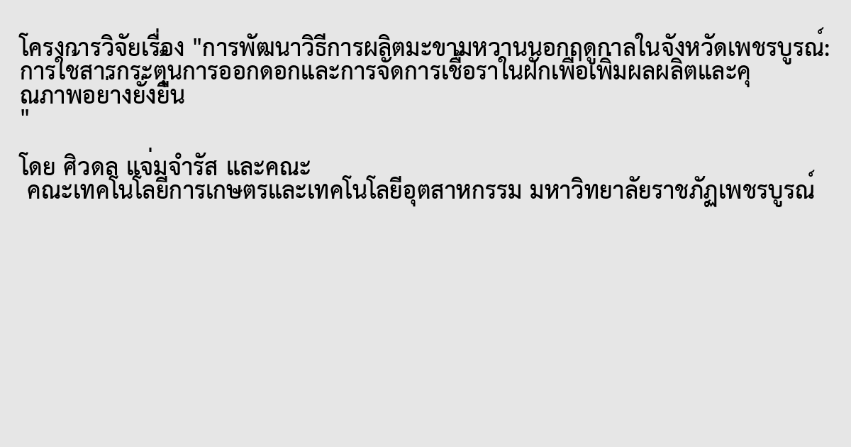การพัฒนาวิธีการผลิตมะขามหวานนอกฤดูกาลในจังหวัดเพชรบูรณ์: การใช้สารกระตุ้นการออกดอกและการจัดการเชื้อราในฝักเพื่อเพิ่มผลผลิตและคุณภาพอย่างยั่งยืน