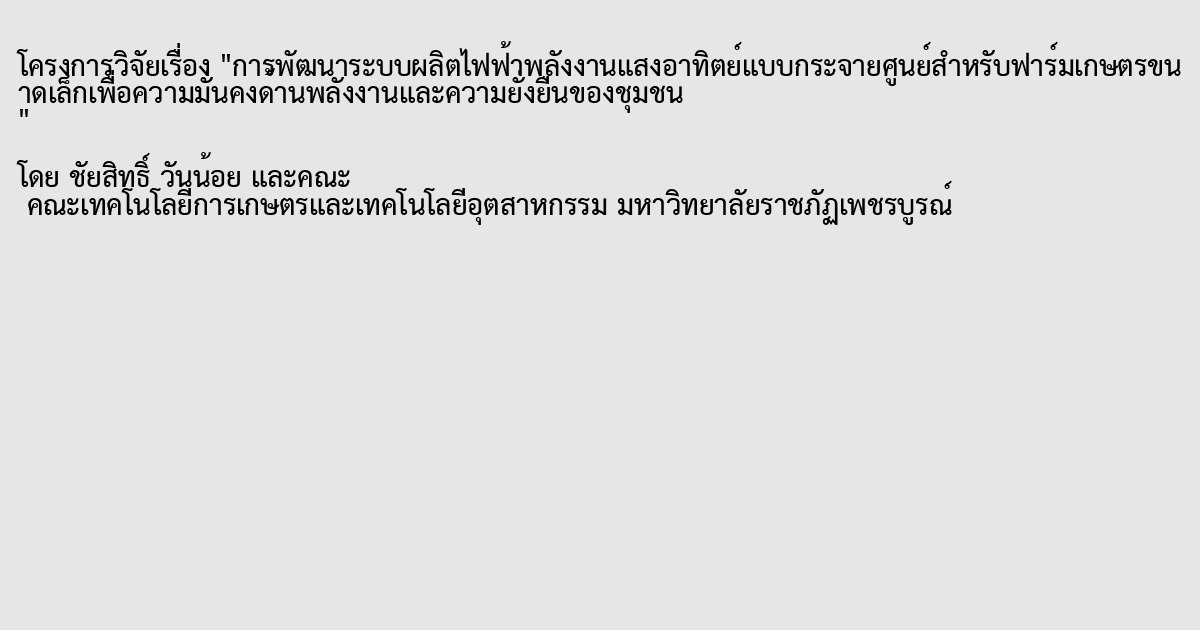 การพัฒนาระบบผลิตไฟฟ้าพลังงานแสงอาทิตย์แบบกระจายศูนย์สำหรับฟาร์มเกษตรขนาดเล็กเพื่อความมั่นคงด้านพลังงานและความยั่งยืนของชุมชน