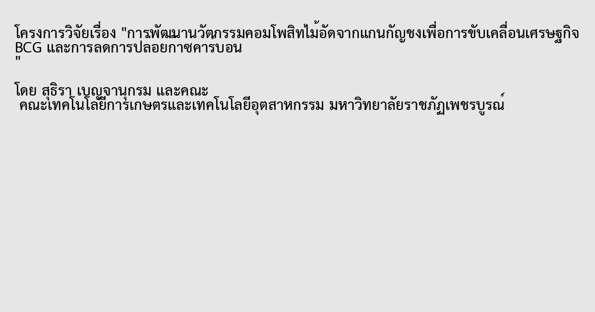 การพัฒนานวัตกรรมคอมโพสิทไม้อัดจากแกนกัญชงเพื่อการขับเคลื่อนเศรษฐกิจ BCG และการลดการปล่อยก๊าซคาร์บอน