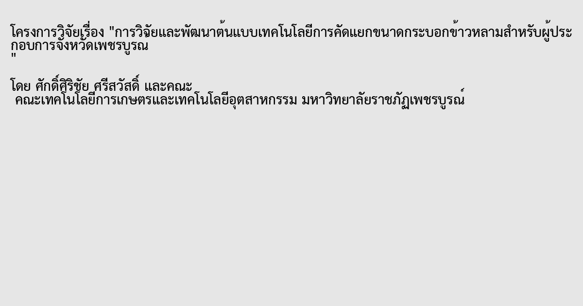 การวิจัยและพัฒนาต้นแบบเทคโนโลยีการคัดแยกขนาดกระบอกข้าวหลามสำหรับผู้ประกอบการจังหวัดเพชรบูรณ์