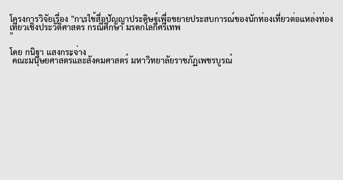การใช้สื่อปัญญาประดิษฐ์เพื่อขยายประสบการณ์ของนักท่องเที่ยวต่อแหล่งท่องเที่ยวเชิงประวัติศาสตร์ กรณีศึกษา มรดกโลกศรีเทพ