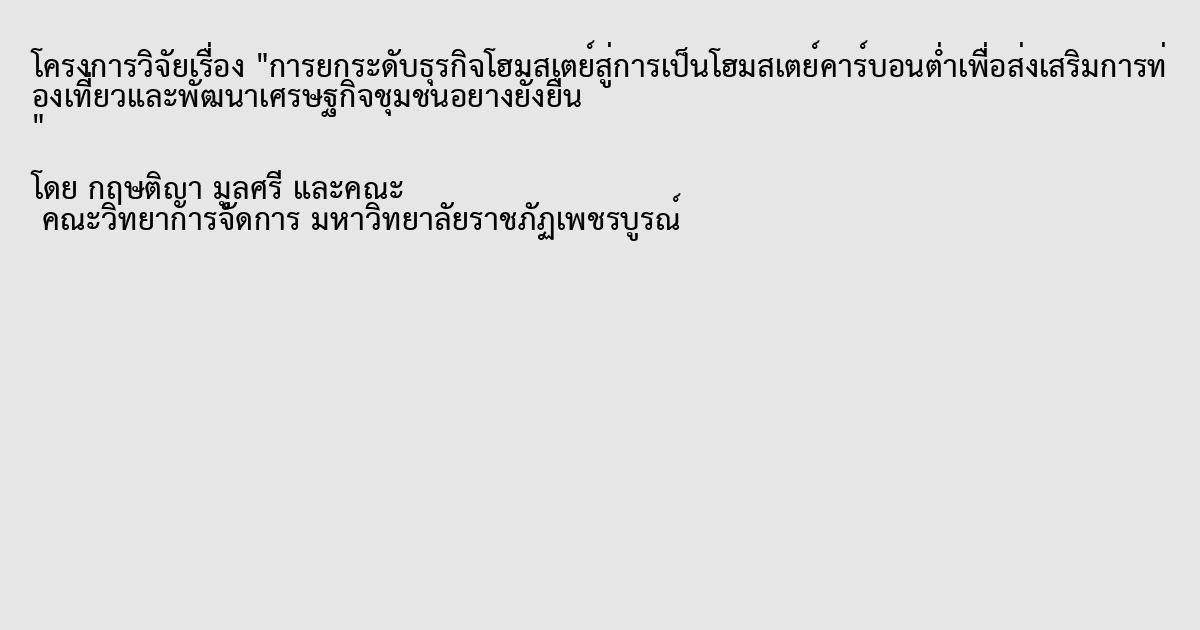 การยกระดับธุรกิจโฮมสเตย์สู่การเป็นโฮมสเตย์คาร์บอนต่ำเพื่อส่งเสริมการท่องเที่ยวและพัฒนาเศรษฐกิจชุมชนอย่างยั่งยืน