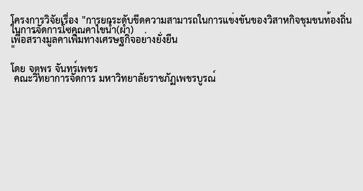 การยกระดับขีดความสามารถในการแข่งขันของวิสาหกิจชุมชนท้องถิ่น ในการจัดการโซ่คุณค่าไข่น้ำ(ผำ) เพื่อสร้างมูลค่าเพิ่มทางเศรษฐกิจอย่างยั่งยืน