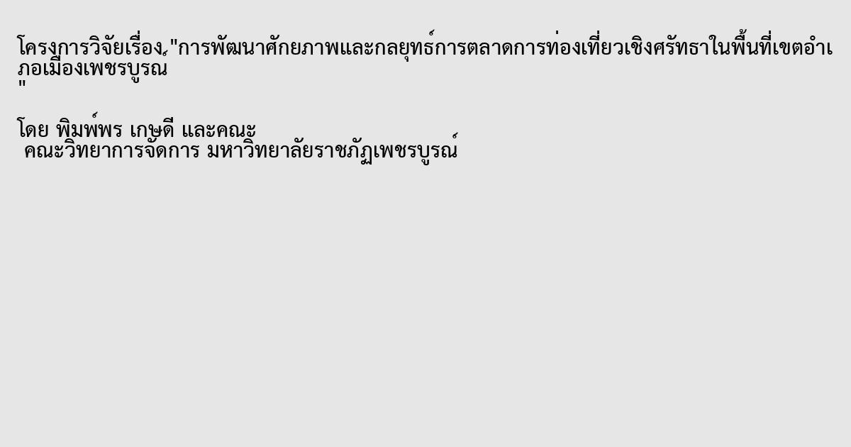 การพัฒนาศักยภาพและกลยุทธ์การตลาดการท่องเที่ยวเชิงศรัทธาในพื้นที่เขตอำเภอเมืองเพชรบูรณ์
