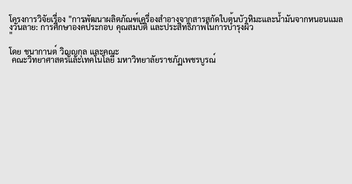 การพัฒนาผลิตภัณฑ์เครื่องสำอางจากสารสกัดใบต้นบัวหิมะและน้ำมันจากหนอนแมลงวันลาย: การศึกษาองค์ประกอบ คุณสมบัติ และประสิทธิภาพในการบำรุงผิว
