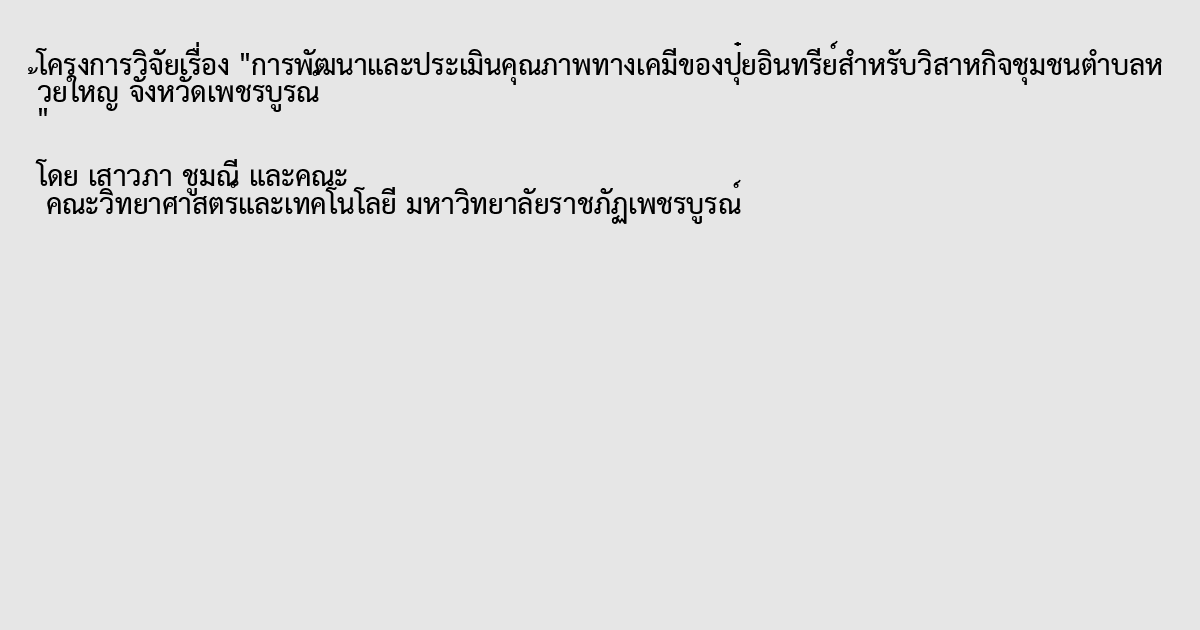 การพัฒนาและประเมินคุณภาพทางเคมีของปุ๋ยอินทรีย์สำหรับวิสาหกิจชุมชนตำบลห้วยใหญ่ จังหวัดเพชรบูรณ์