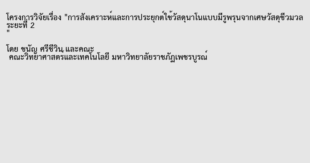 การสังเคราะห์และการประยุกต์ใช้วัสดุนาโนแบบมีรูพรุนจากเศษวัสดุชีวมวล ระยะที่ 2