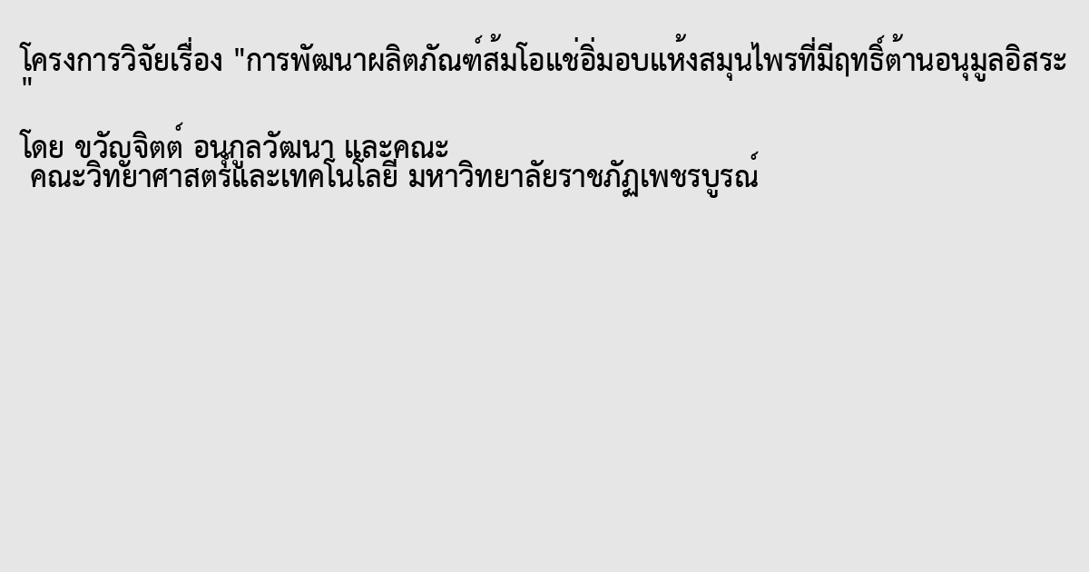 การพัฒนาผลิตภัณฑ์ส้มโอแช่อิ่มอบแห้งสมุนไพรที่มีฤทธิ์ต้านอนุมูลอิสระ