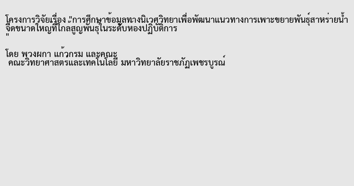 การศึกษาข้อมูลทางนิเวศวิทยาเพื่อพัฒนาแนวทางการเพาะขยายพันธุ์สาหร่ายน้ำจืดขนาดใหญ่ที่ใกล้สูญพันธุ์ในระดับห้องปฏิบัติการ