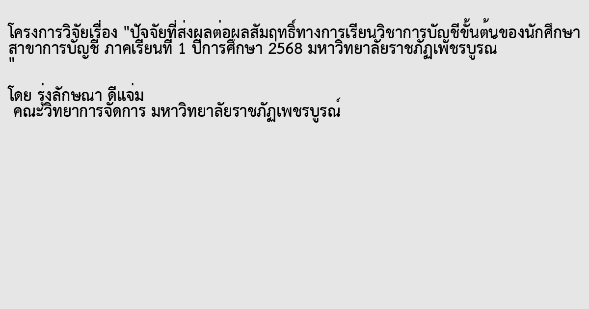 ปัจจัยที่ส่งผลต่อผลสัมฤทธิ์ทางการเรียนวิชาการบัญชีขั้นต้นของนักศึกษา สาขาการบัญชี ภาคเรียนที่ 1 ปีการศึกษา 2568 มหาวิทยาลัยราชภัฏเพชรบูรณ์
