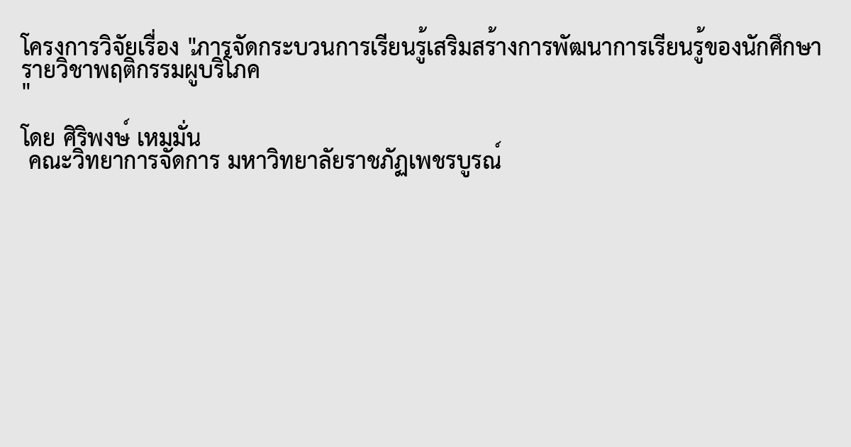 การจัดกระบวนการเรียนรู้เสริมสร้างการพัฒนาการเรียนรู้ของนักศึกษา รายวิชาพฤติกรรมผู้บริโภค