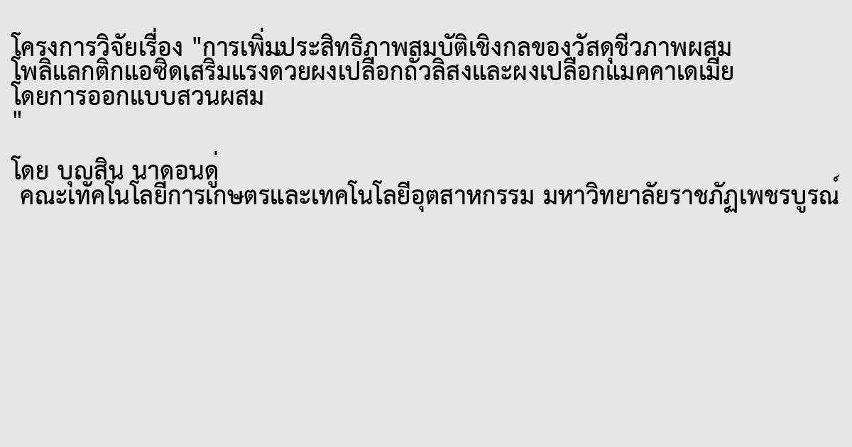 การเพิ่มประสิทธิภาพสมบัติเชิงกลของวัสดุชีวภาพผสม โพลิแลกติกแอซิดเสริมแรงด้วยผงเปลือกถั่วลิสงและผงเปลือกแมคคาเดเมีย โดยการออกแบบส่วนผสม