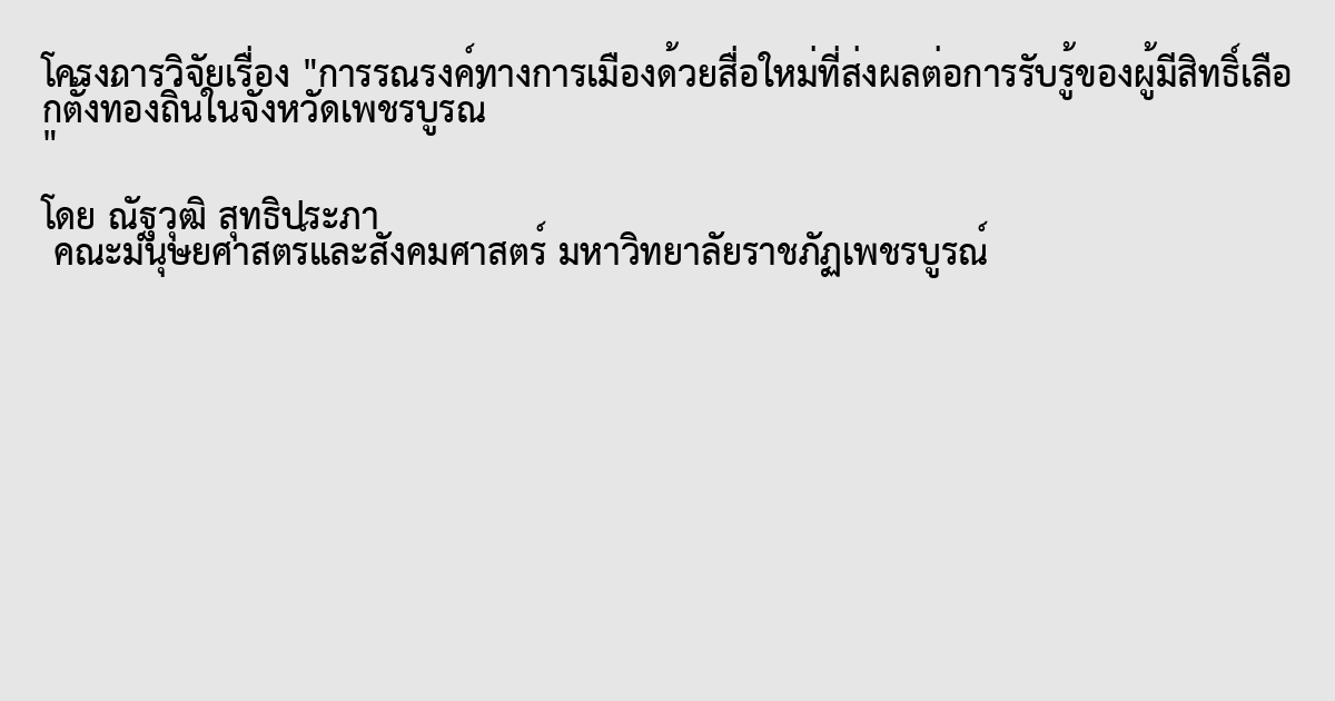 การรณรงค์ทางการเมืองด้วยสื่อใหม่ที่ส่งผลต่อการรับรู้ของผู้มีสิทธิ์เลือกตั้งท้องถิ่นในจังหวัดเพชรบูรณ์