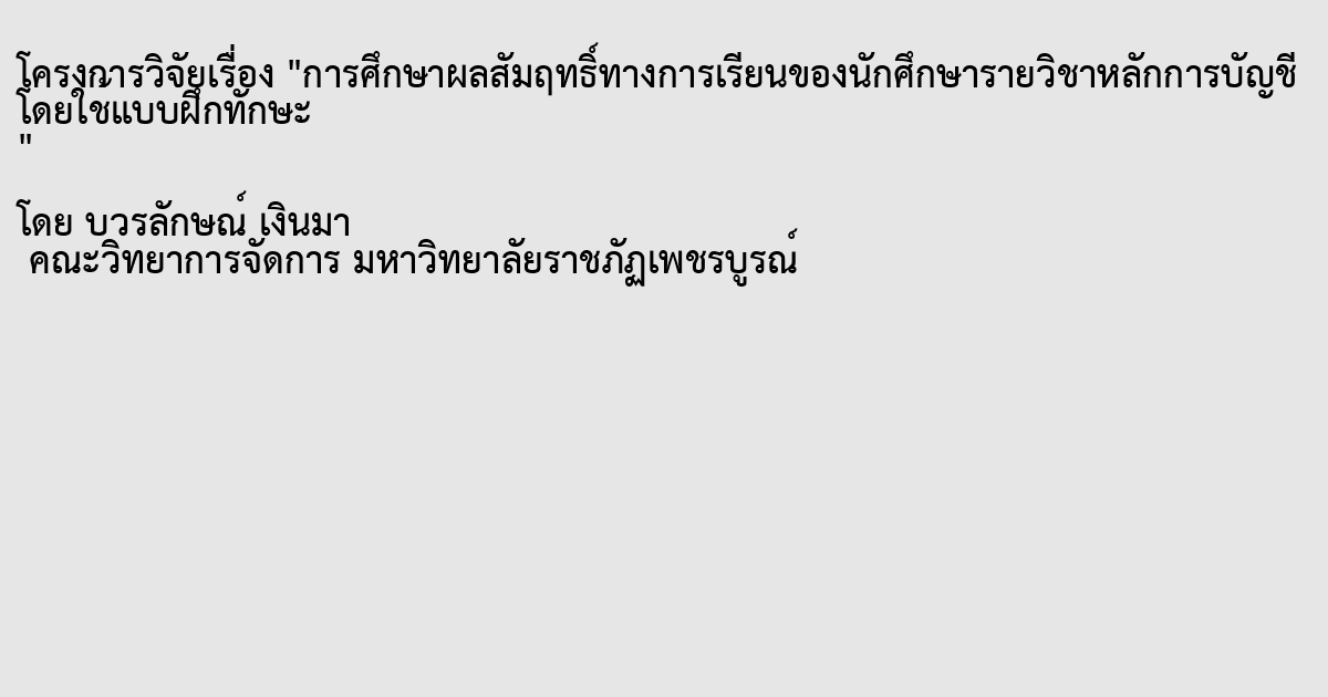 การศึกษาผลสัมฤทธิ์ทางการเรียนของนักศึกษารายวิชาหลักการบัญชี โดยใช้แบบฝึกทักษะ