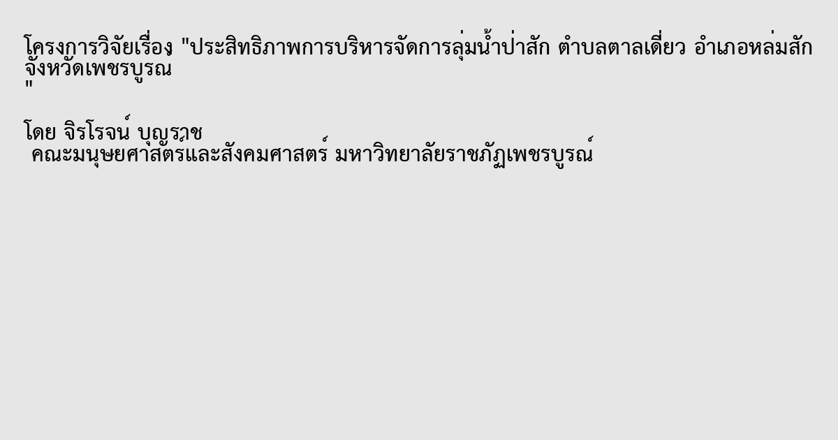ประสิทธิภาพการบริหารจัดการลุ่มน้ำป่าสัก ตำบลตาลเดี่ยว อำเภอหล่มสัก จังหวัดเพชรบูรณ์