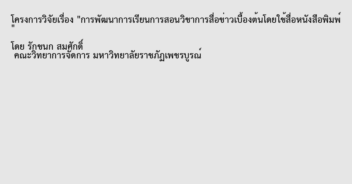 การพัฒนาการเรียนการสอนวิชาการสื่อข่าวเบื้องต้นโดยใช้สื่อหนังสือพิมพ์