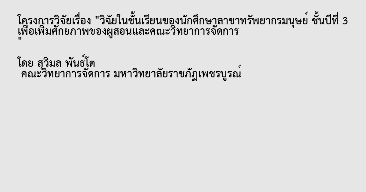 วิจัยในชั้นเรียนของนักศึกษาสาขาทรัพยากรมนุษย์ ชั้นปีที่ 3 เพื่อเพิ่มศักยภาพของผู้สอนและคณะวิทยาการจัดการ