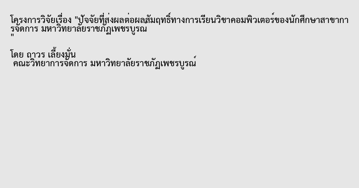 ปัจจัยที่ส่งผลต่อผลสัมฤทธิ์ทางการเรียนวิชาคอมพิวเตอร์ของนักศึกษาสาขาการจัดการ มหาวิทยาลัยราชภัฏเพชรบูรณ์