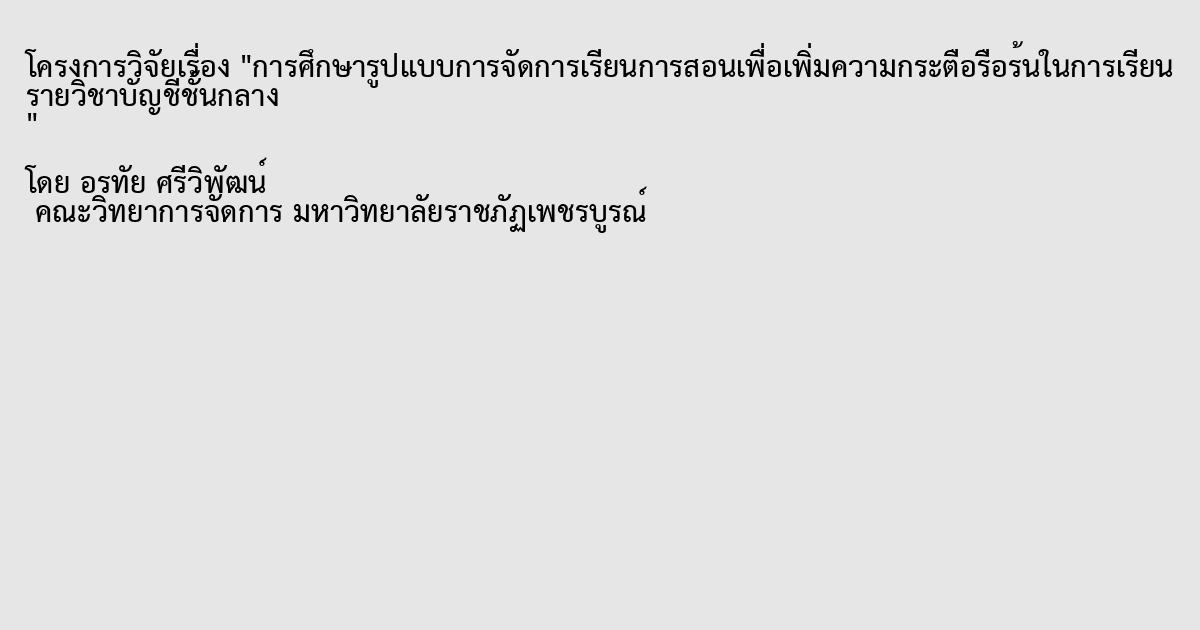 การศึกษารูปแบบการจัดการเรียนการสอนเพื่อเพิ่มความกระตือรือร้นในการเรียนรายวิชาบัญชีชั้นกลาง