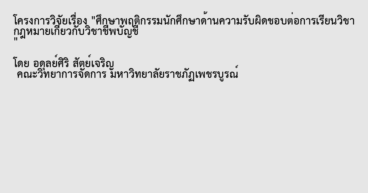 ศึกษาพฤติกรรมนักศึกษาด้านความรับผิดชอบต่อการเรียนวิชา กฎหมายเกี่ยวกับวิชาชีพบัญชี