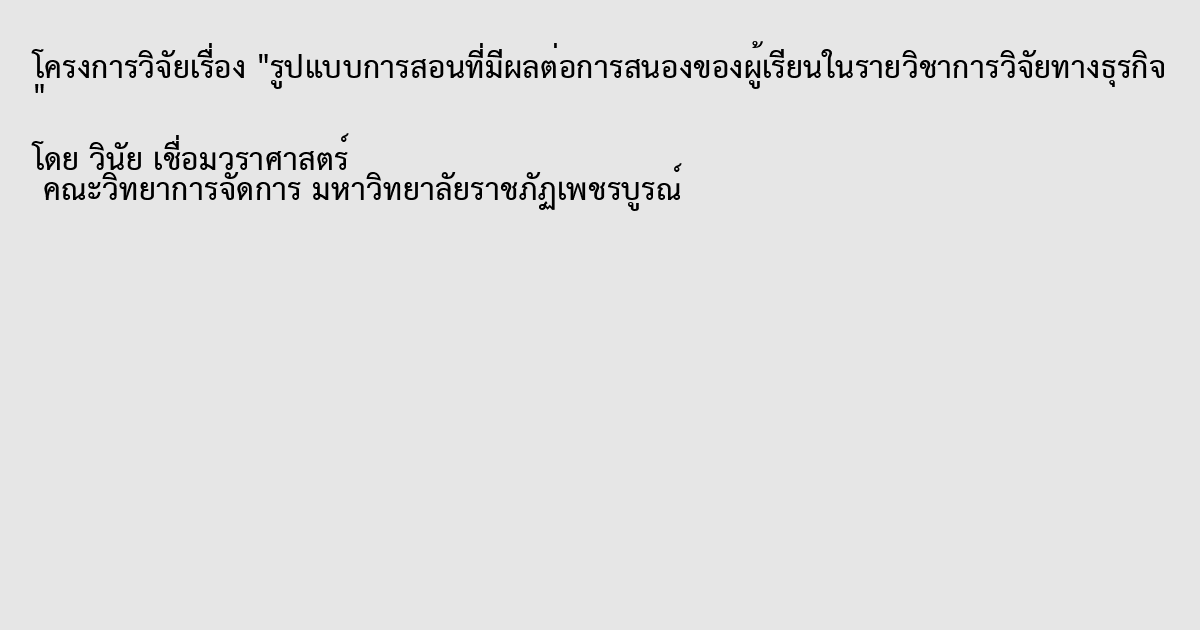 รูปแบบการสอนที่มีผลต่อการสนองของผู้เรียนในรายวิชาการวิจัยทางธุรกิจ