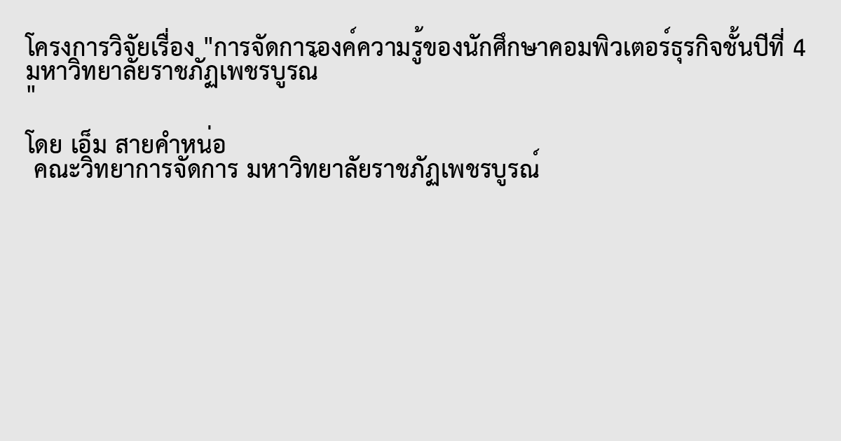 การจัดการองค์ความรู้ของนักศึกษาคอมพิวเตอร์ธุรกิจชั้นปีที่ 4 มหาวิทยาลัยราชภัฏเพชรบูรณ์