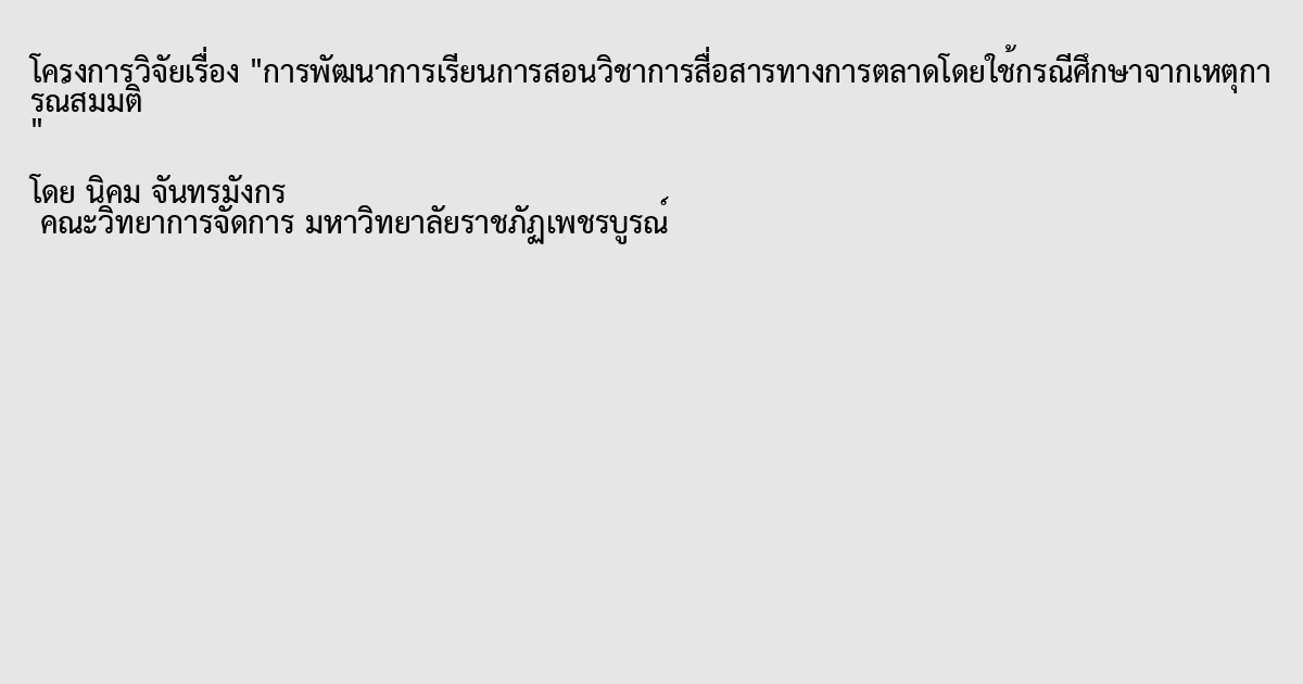 การพัฒนาการเรียนการสอนวิชาการสื่อสารทางการตลาดโดยใช้กรณีศึกษาจากเหตุการณ์สมมติ