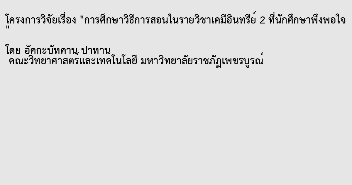 การศึกษาวิธีการสอนในรายวิชาเคมีอินทรีย์ 2 ที่นักศึกษาพึงพอใจ