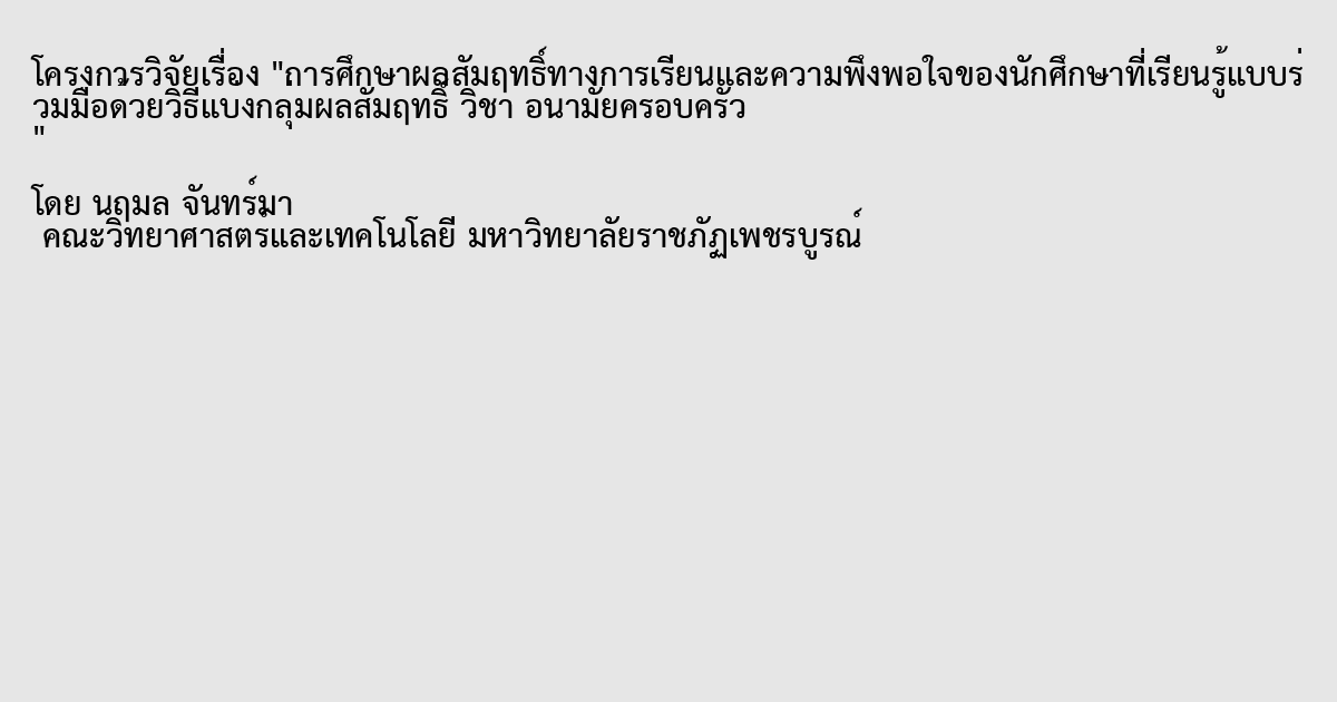 การศึกษาผลสัมฤทธิ์ทางการเรียนและความพึงพอใจของนักศึกษาที่เรียนรู้แบบร่วมมือด้วยวิธีแบ่งกลุ่มผลสัมฤทธิ์ วิชา อนามัยครอบครัว