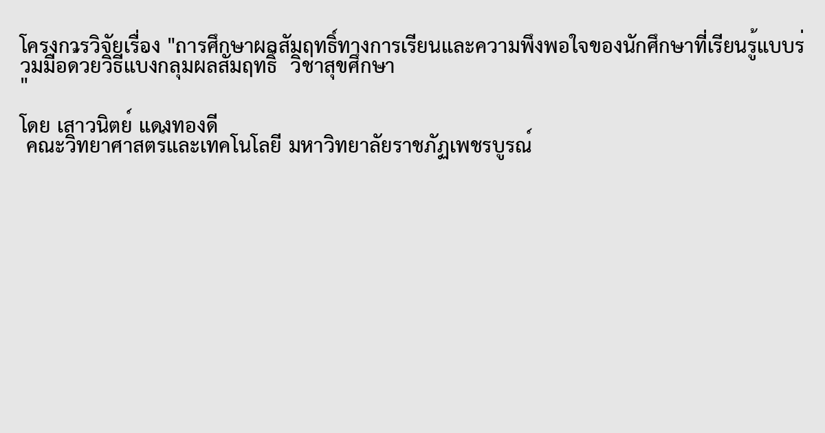 การศึกษาผลสัมฤทธิ์ทางการเรียนและความพึงพอใจของนักศึกษาที่เรียนรู้แบบร่วมมือด้วยวิธีแบ่งกลุ่มผลสัมฤทธิ์ วิชาสุขศึกษา