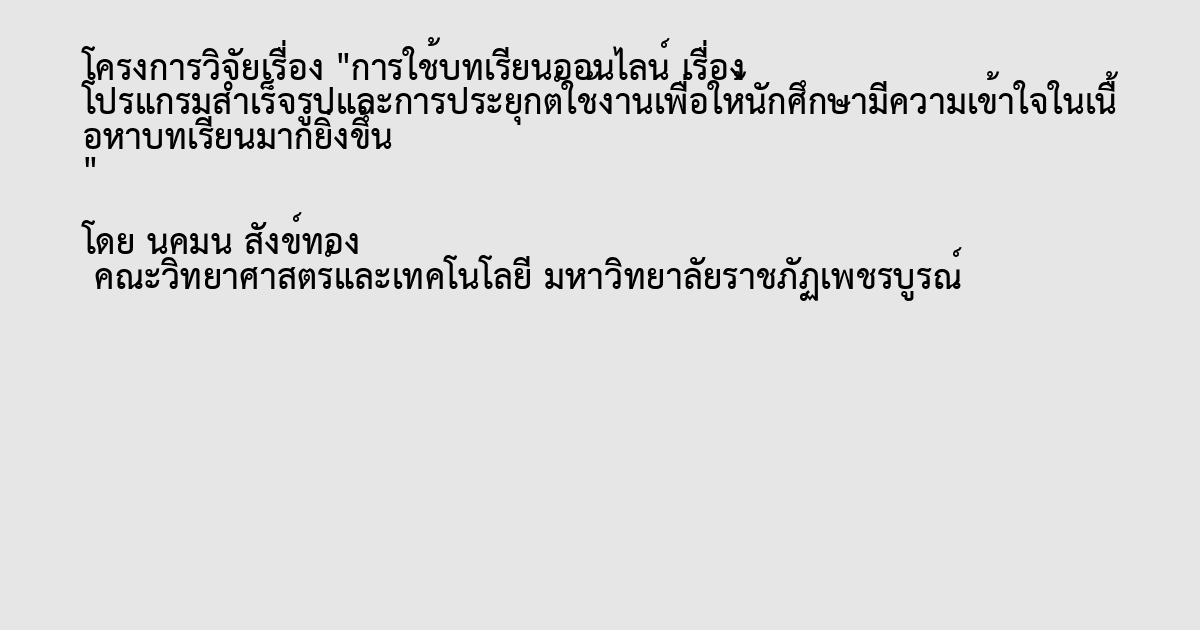 การใช้บทเรียนออนไลน์ เรื่อง โปรแกรมสำเร็จรูปและการประยุกต์ใช้งานเพื่อให้นักศึกษามีความเข้าใจในเนื้อหาบทเรียนมากยิ่งขึ้น