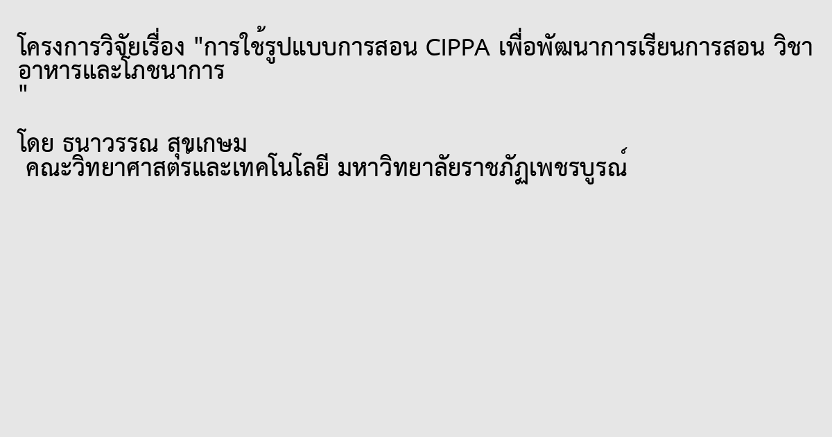 การใช้รูปแบบการสอน CIPPA เพื่อพัฒนาการเรียนการสอน วิชา อาหารและโภชนาการ