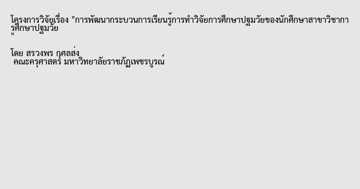 การพัฒนากระบวนการเรียนรู้การทำวิจัยการศึกษาปฐมวัยของนักศึกษาสาขาวิชาการศึกษาปฐมวัย