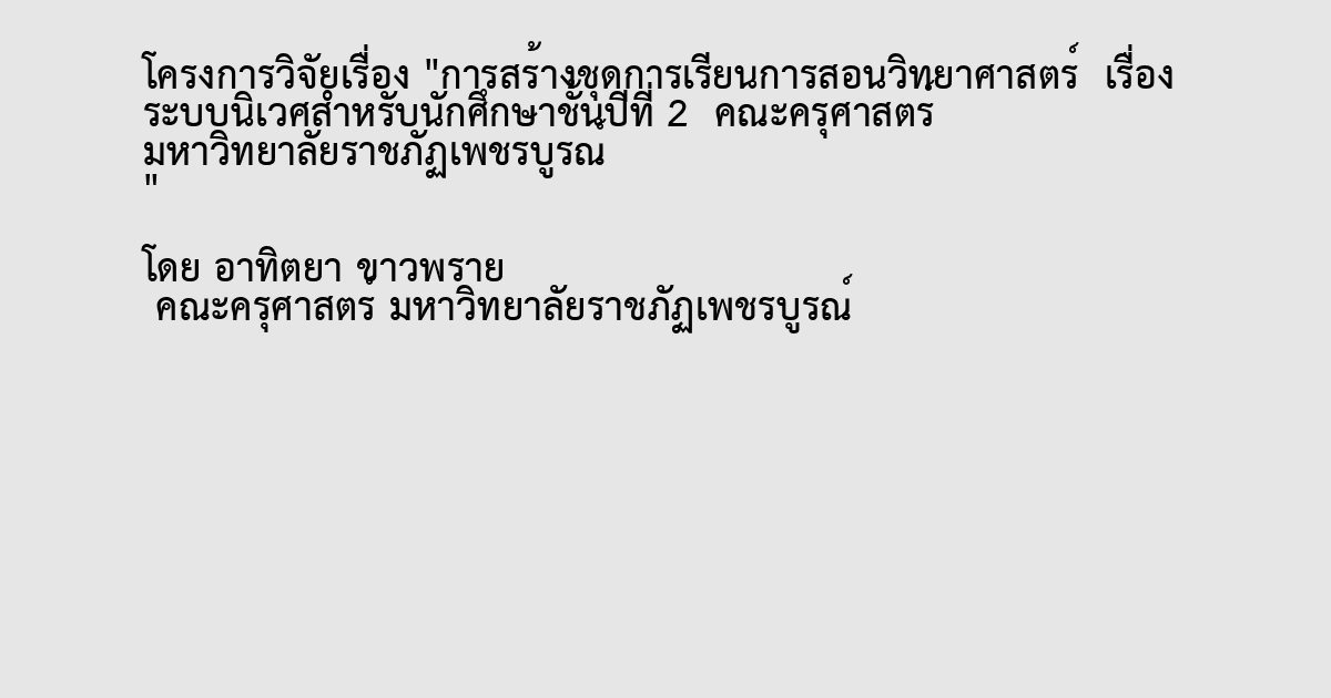 การสร้างชุดการเรียนการสอนวิทยาศาสตร์ เรื่อง ระบบนิเวศสำหรับนักศึกษาชั้นปีที่ 2 คณะครุศาสตร์ มหาวิทยาลัยราชภัฏเพชรบูรณ์
