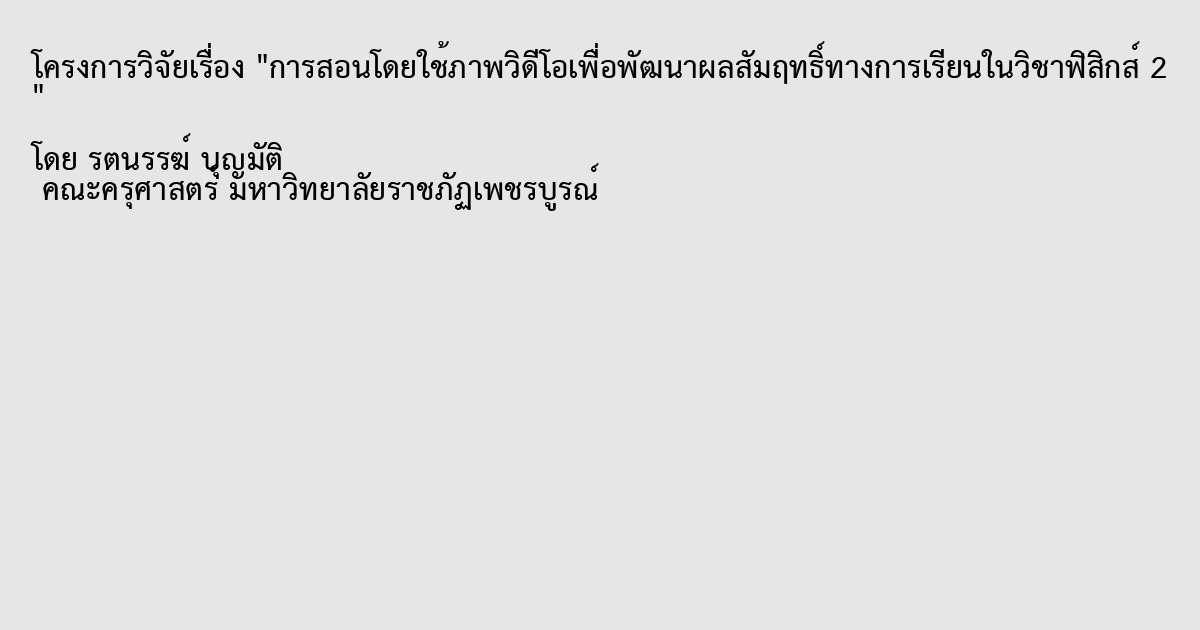 การสอนโดยใช้ภาพวิดีโอเพื่อพัฒนาผลสัมฤทธิ์ทางการเรียนในวิชาฟิสิกส์ 2