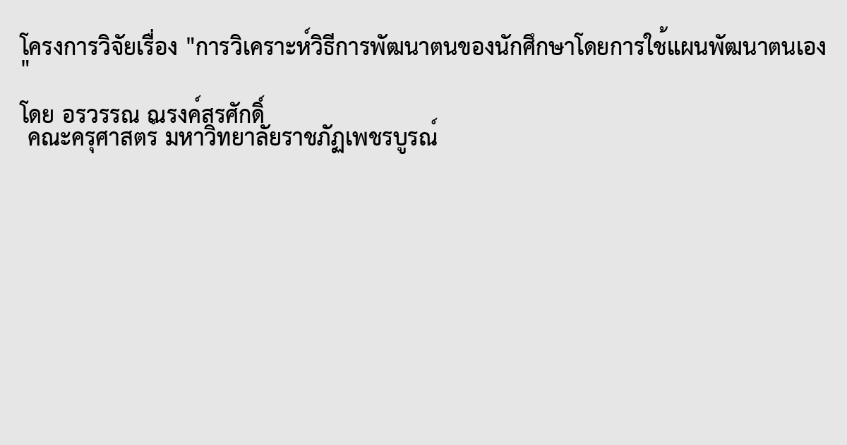 [ข้อมูลทั่วไป] 2553 : การวิเคราะห์วิธีการพัฒนาตนข...กษาโดยการใช้แผนพัฒนาตนเอง