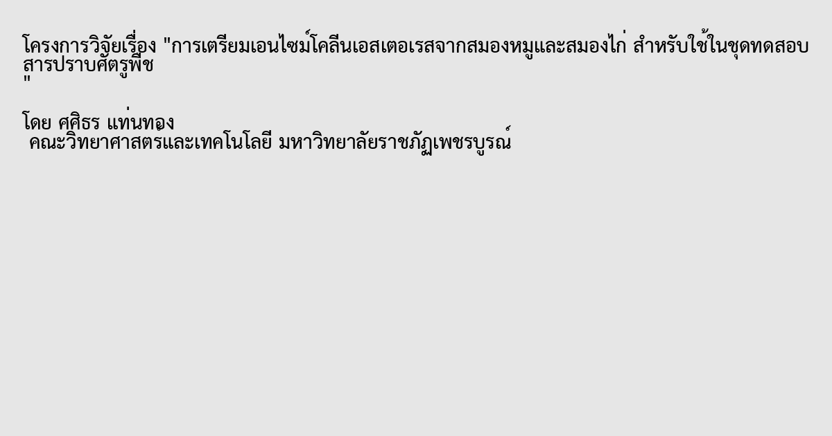 การเตรียมเอนไซม์โคลีนเอสเตอเรสจากสมองหมูและสมองไก่ สำหรับใช้ในชุดทดสอบ สารปราบศัตรูพืช