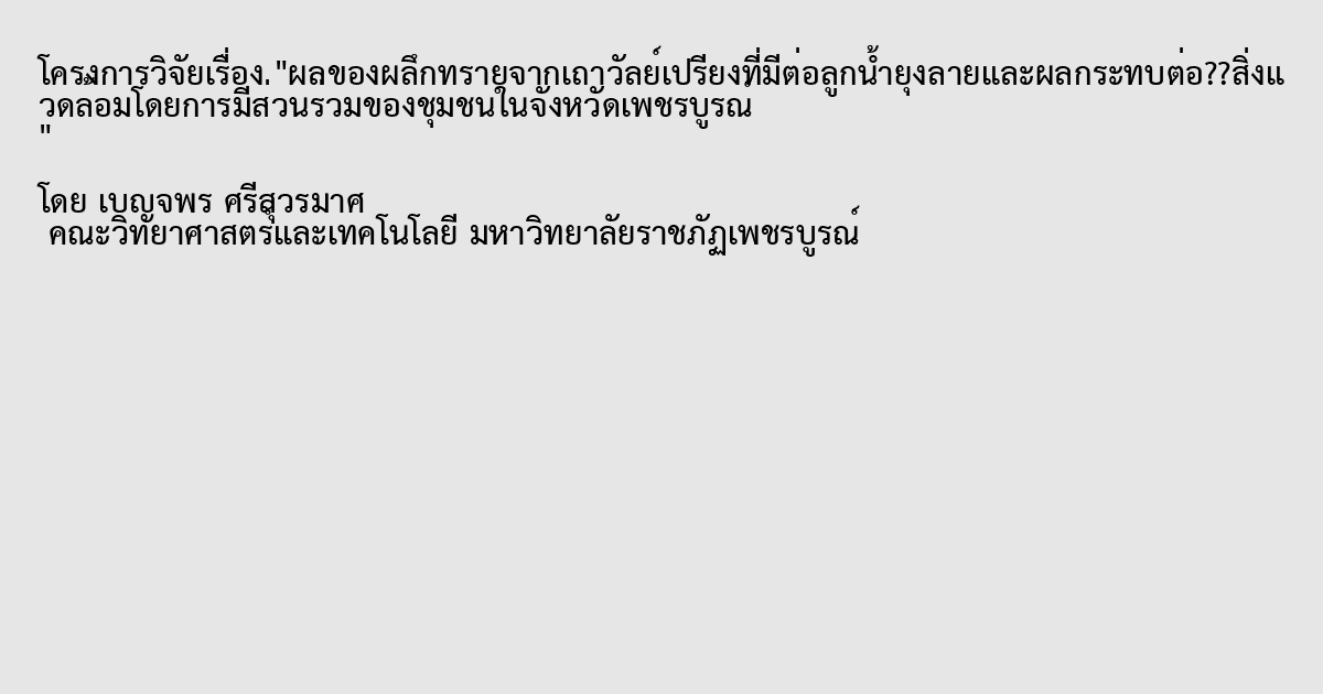 ผลของผลึกทรายจากเถาวัลย์เปรียงที่มีต่อลูกน้ำยุงลายและผลกระทบต่อ??สิ่งแวดล้อมโดยการมีส่วนร่วมของชุมชนในจังหวัดเพชรบูรณ์