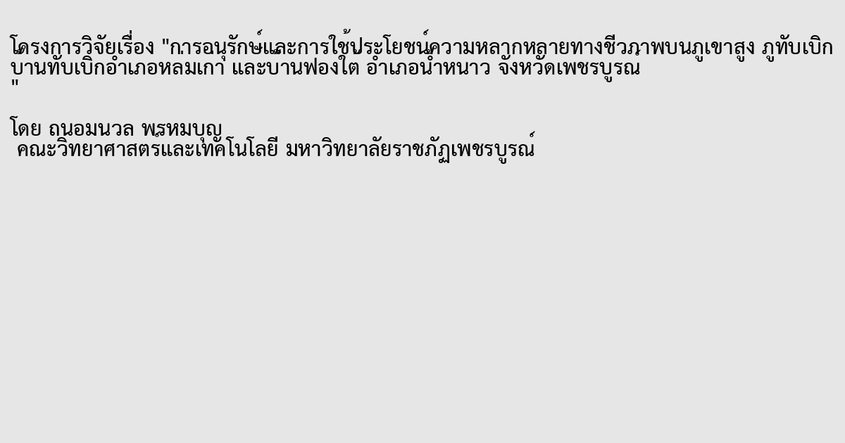 การอนุรักษ์และการใช้ประโยชน์ความหลากหลายทางชีวภาพบนภูเขาสูง ภูทับเบิก บ้านทับเบิกอำเภอหล่มเก่า และบ้านฟองใต้ อำเภอน้ำหนาว จังหวัดเพชรบูรณ์