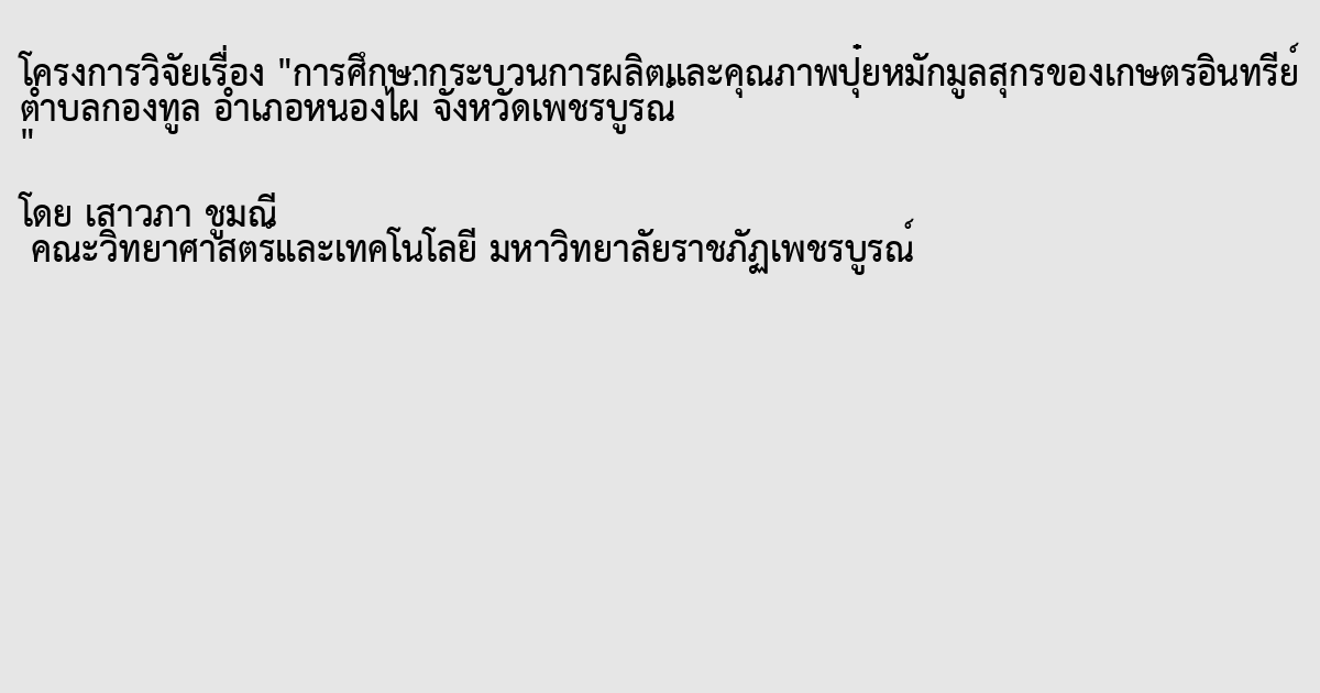 คำสำคัญ: ปุ๋ยหมักมูลสุกร , คุณภาพน้ำปุ๋ยอินทรีย์